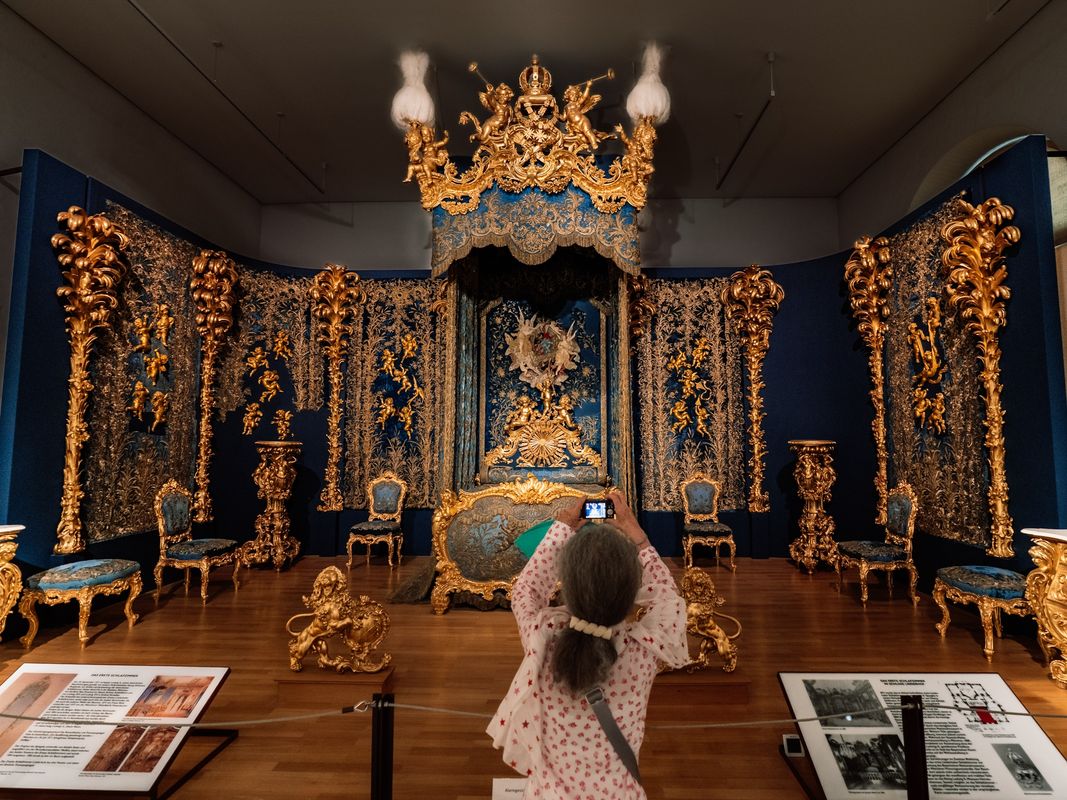 In some respects, as with its vast Hall of Mirrors, Herrenchiemsee actually surpasses Versailles. With its elegant gardens and walkways and its luscious interiors of gold, glass and porcelain, it is a visually overwhelming monument to opulence, and also reflects the eccentric and troubled personality of Ludwig: such as the celebrated elevated dining table which could be raised and lowered through the floor to the kitchens below so that the reclusive king did not have to see his servants.